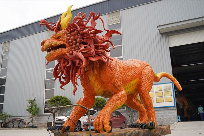 • 制作工藝:內(nèi)部采用鋼結(jié)構(gòu)造型、直流電機(jī)控制動(dòng)作、表皮采用高密度海綿,手工造型、刻模、外植膠皮、噴涂色彩,產(chǎn)品形象生動(dòng)、逼真,動(dòng)作靈活、自然,防水,防火,防凍,抗高溫功效。