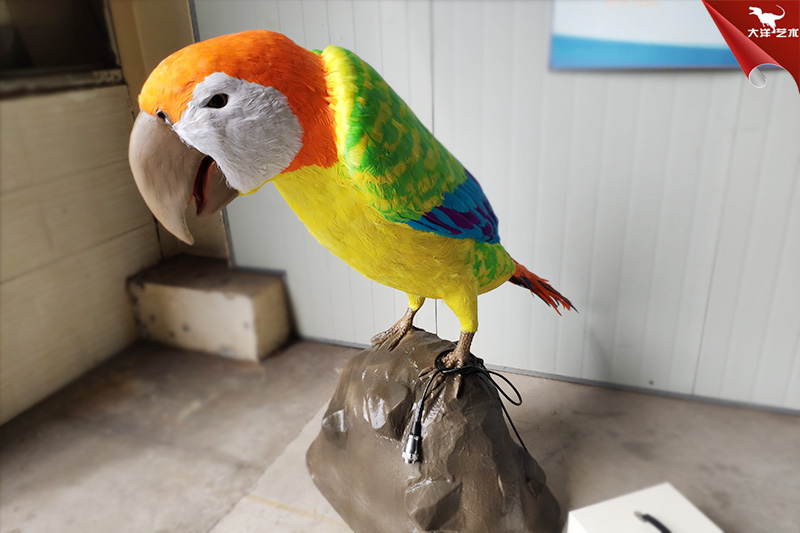 仿真鸚鵡模型,采用真實羽毛,1:1比例手工制作,仿真還原度高,造型逼真,能動會叫。適用于景區(qū)、動物園、博物館、動物模型展覽等場景!