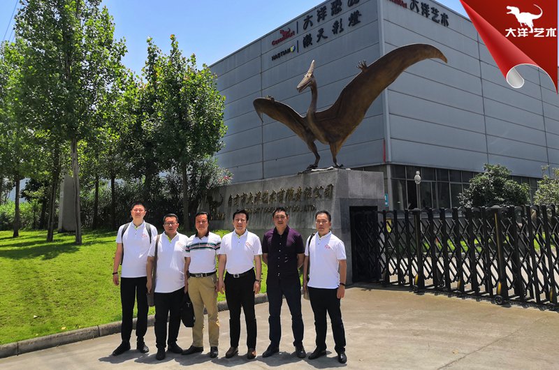 2019年6月,沈陽(yáng)客戶到廠參觀,定制了一批玻璃鋼恐龍,與負(fù)責(zé)人合影留念。