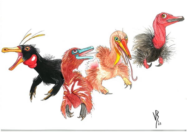 阿爾瓦雷斯龍類代表性物種復(fù)原圖,展現(xiàn)了前肢的有趣的演化歷程。ViktoRadermacher/繪