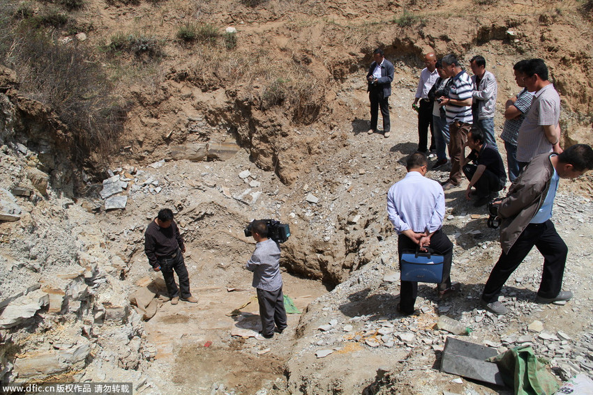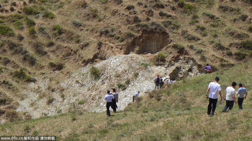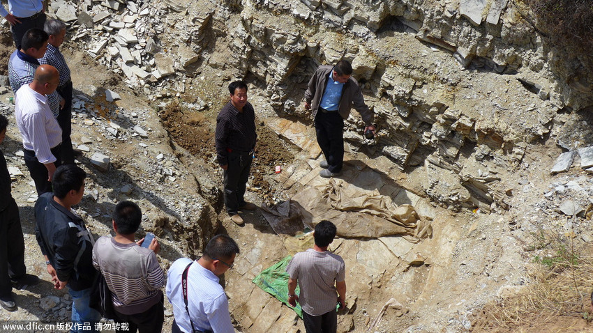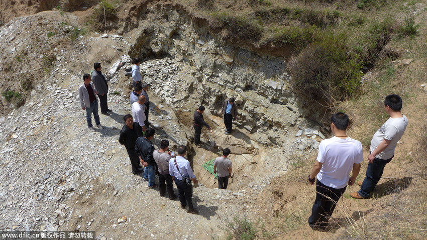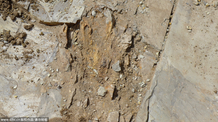 圖為“恐龍化石”發(fā)現(xiàn)現(xiàn)場。 王月 攝