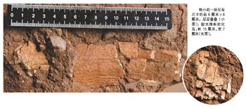 前日下午,連場暴雨過后,河源恐龍博物館館長杜衍禮與該館辦公室主任劉藝、副主任黃志青在京九鐵路附近、東源縣城萬綠春天住宅區(qū)與河源市區(qū)西邊交界處的一個(gè)工地里日常巡查時(shí),在一堆被挖土機(jī)推出來的亂石塊中,意外發(fā)現(xiàn)一塊紅砂巖中嵌有兩處史前生物骨骼化石,其中一塊略小的,尺寸約有6厘米 ×6厘米,層層疊疊的共有好幾層;較大而長的化石,長15厘米、寬7厘米。