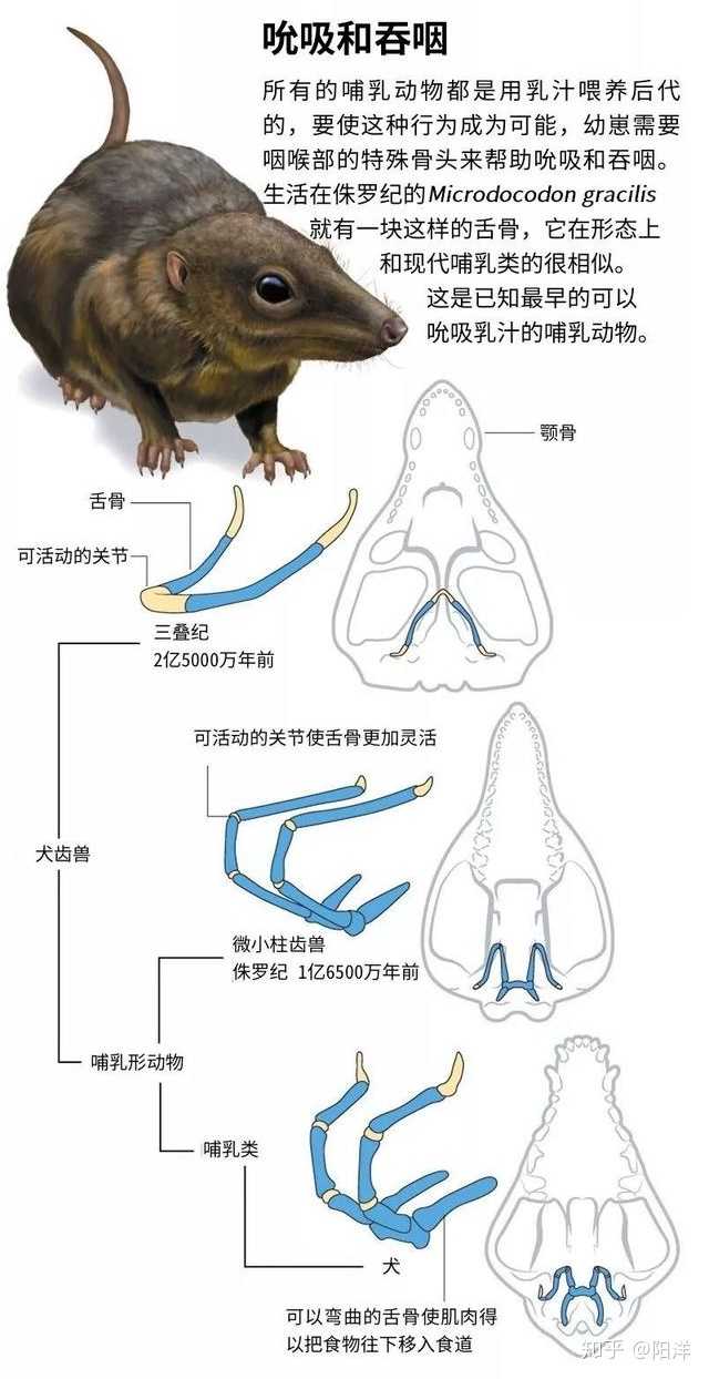 早期哺乳類的進化史由于中生代化石零碎等原因一直不甚清晰,但2019年的幾項發(fā)現(xiàn)讓我們對哺乳類早期歷史的認識進步了一大截,首先是迄今為止最早的哺乳類特殊舌骨結(jié)構(gòu)化石的發(fā)現(xiàn)。