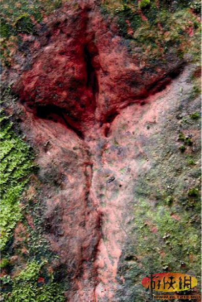 數(shù)年前,赤水市寶源鄉(xiāng),當(dāng)?shù)厝艘粋€(gè)小發(fā)現(xiàn),讓人們浮想聯(lián)翩。在寶源鄉(xiāng)的深山老林中,一些巨型巖石上有形狀象雞爪的腳印,村民們叫它“天雞石”。上面的“天雞腳印”不僅每個(gè)腳跡的長(zhǎng)、寬相等,而且腳跡之間的距離也幾乎相等。2008年,青年恐龍學(xué)者邢立達(dá)應(yīng)邀帶隊(duì)來(lái)此考察,判定這所謂的“天雞腳印”就是地質(zhì)處于內(nèi)陸湖盆時(shí)期,一類肉食性獸腳類恐龍走過(guò)后留下的腳印化石。至于足跡形成的年代,根據(jù)孢粉分析,約處于白堊紀(jì)中晚期。