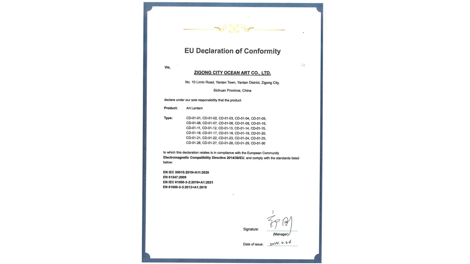 歐盟符合性聲明EU DOC