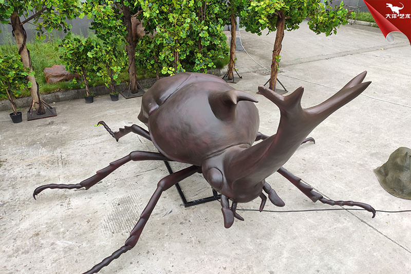 獨角仙產(chǎn)品是英國客戶定制的,主要用于戶外主題展覽。此次制作的仿真昆蟲獨角仙客戶只要求了一個動作,就是獨角仙頭部角能夠上下左右轉(zhuǎn)動。如有其他需求我們也可以定制!