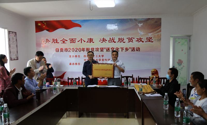 新冠肺炎疫情陰霾逐漸消散,社會(huì)生活逐漸回歸正常。為推動(dòng)精準(zhǔn)扶貧工作持續(xù)深入,由中共自貢市委宣傳部、四川輕化工大學(xué)主辦,四川輕化工大學(xué)美術(shù)學(xué)院黨總支、民俗燈文化普及基地承辦的“全面決勝小康,決戰(zhàn)脫貧攻堅(jiān)”為主題的送文化下鄉(xiāng)特色黨建活動(dòng)于525日在自貢市沿灘區(qū)永安鎮(zhèn)立志村如期舉行。美術(shù)學(xué)院副院長、基地副主任梁川,黨總支副書記肖雷,黨政辦主任曾玉,科技處成果管理科科長李代瓊,美術(shù)學(xué)院教師江毅、曹悅,永安鎮(zhèn)副鎮(zhèn)長童依黎、立志村支部書記李祝賢、副書記李桂英和村民代表20余人參加活動(dòng)。活動(dòng)由立志村黨支部書記李祝賢主持。