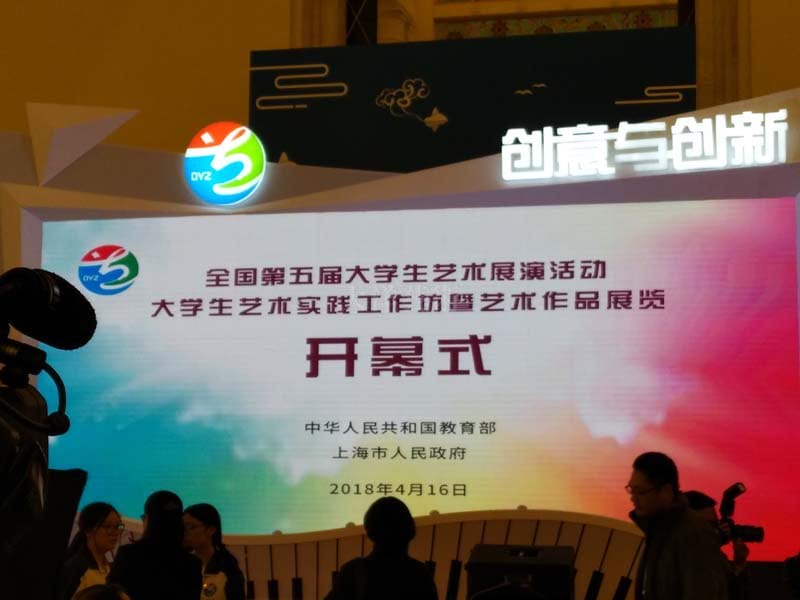 4月16日,教育部黨組成員、部長(zhǎng)助理劉大為,上海市副市長(zhǎng)翁鐵慧,上海市教育衛(wèi)生工作委員會(huì)書(shū)記虞麗娟,教育部體育衛(wèi)生與藝術(shù)教育司司長(zhǎng)王登峰,與四川理工學(xué)院美術(shù)學(xué)院學(xué)生何建華、南京航空航天大學(xué)學(xué)生代表共同為全國(guó)第五屆大學(xué)生藝術(shù)展演活動(dòng)暨大學(xué)生藝術(shù)實(shí)踐工作坊、藝術(shù)作品展揭幕。