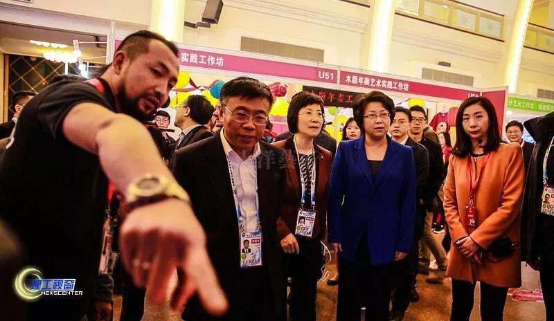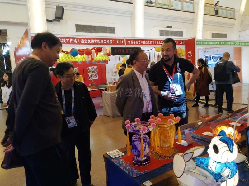 開(kāi)幕式結(jié)束后,教育部黨組成員、部長(zhǎng)助理劉大為,上海市副市長(zhǎng)翁鐵慧,教育部體育衛(wèi)生與藝術(shù)教育司副巡視員萬(wàn)麗君來(lái)到我校民俗彩燈工作坊參觀,美術(shù)學(xué)院設(shè)計(jì)系主任黃磊為各位領(lǐng)導(dǎo)、專(zhuān)家進(jìn)行現(xiàn)場(chǎng)講解。