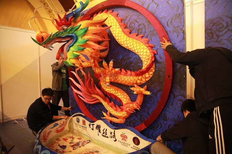 四川理工學院“民俗彩燈工作坊”師生團隊齊心布展
